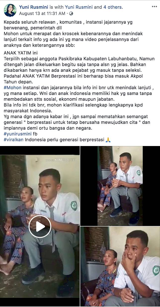 Viralnya curhatan Koko Ardiansyah yang mengaku gagal jadi anggota paskibra kabupaten karena digantikan anak pejabat akhirnya terdengar sampai ke pihak Dinas Pendidikan dan Olahraga (Dispora) Labuhan Batu.